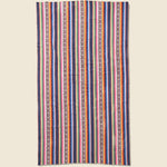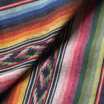 This Vintage Serape textile is beautifully handwoven with a traditional Serape design and finished with subtle ikat details and raw edges. Its larger size makes it perfect for hanging on the wall as a tapestry or tossing over the sofa to add the perfect colorful touch to your space.