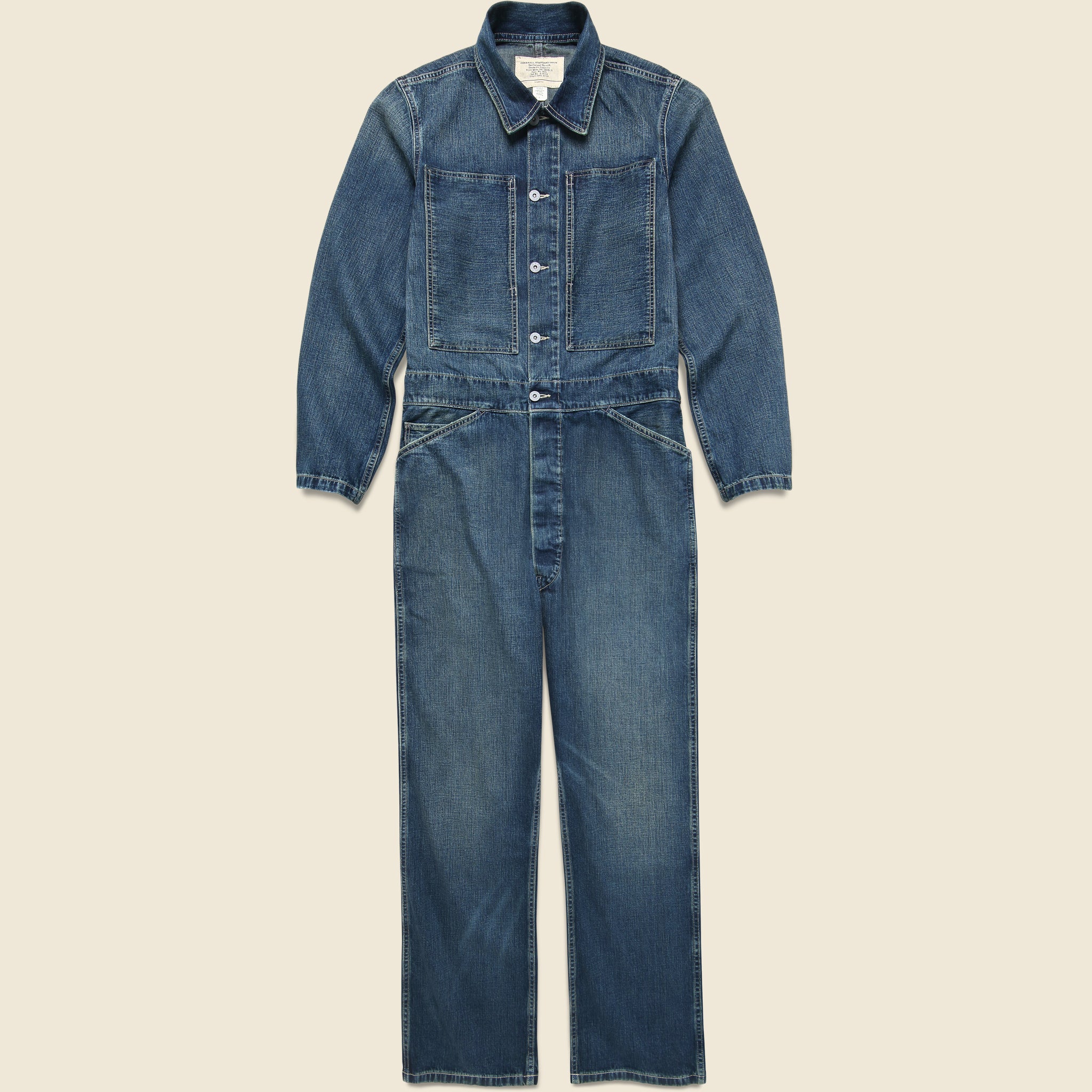 These Denim Coveralls from Double RL are made from a lightweight, 11oz Japanese cotton denim that’s been hand-distressed and specially tinted for a timeworn look and feel from the get. They’re tailored with a classic, relaxed-fitting silhouette that runs true to size and come detailed with American-made metal buttons, a pair of side-entry chest pockets, two front angled waist pockets, two back pockets, and a distressed metal button placket for an authentic, vintage finish.