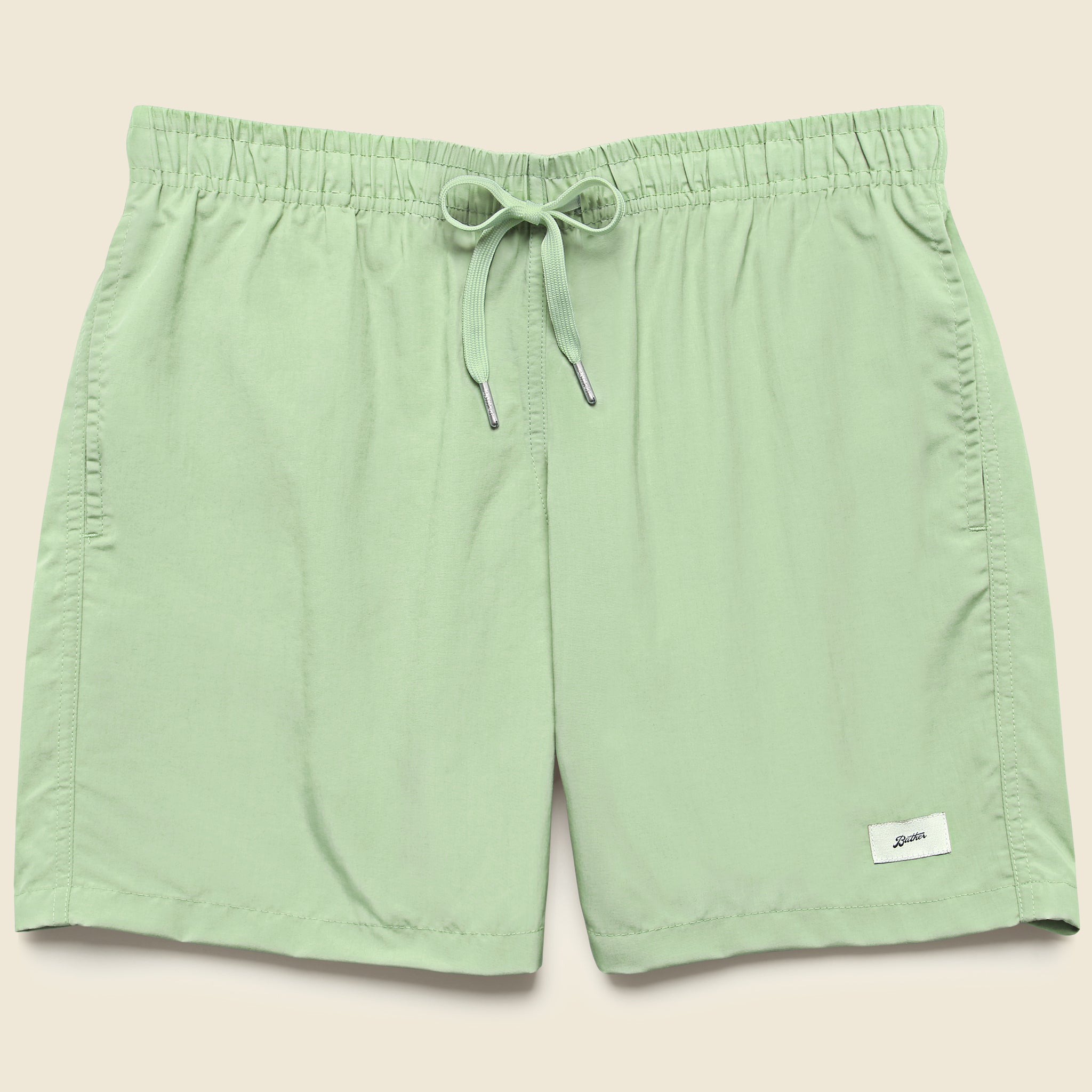 Bather's simple & functional swimwear is designed and sewn in Toronto, Canada. Made to wear on and off the beach, this signature trunk features an elasticized waist with an ultra-fine four-way stretch mesh lining, a quick-dry shell, custom-tipped drawstrings, and a single back pocket with a snap closure.