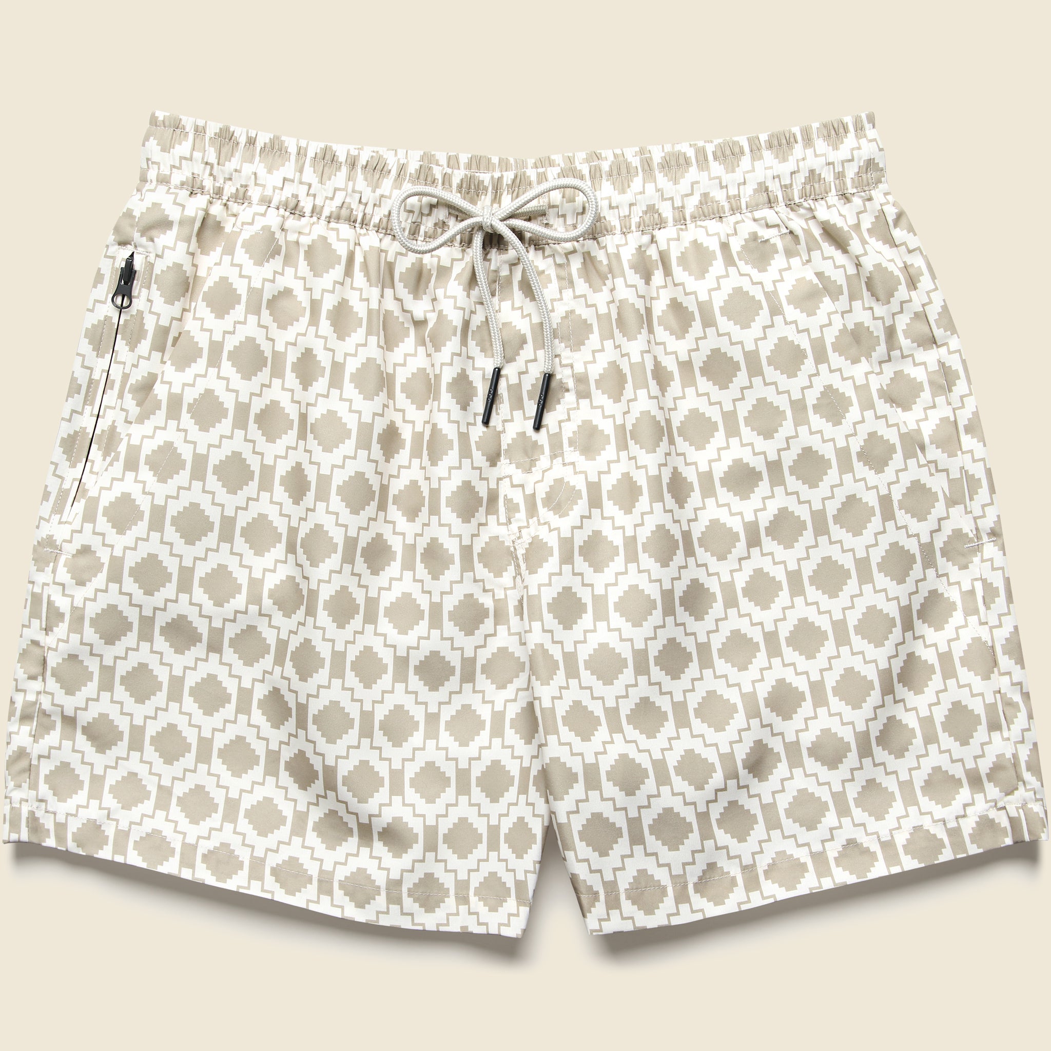 These Swim Trunks from OAS are made from a quick-drying, lightweight polyester to give you a resort-level comfort whether you’re hanging ten or taking a dip to beat the heat. They’ve got two front pockets, a back pocket, and a hidden zipper pocket for a hotel room key or your bank card on the beach. Finished with a fit that’s not too tight and not too baggy, a comfortable mesh lining, and a printed geometric pattern, these trunks are an easy go-to for a fun summer.