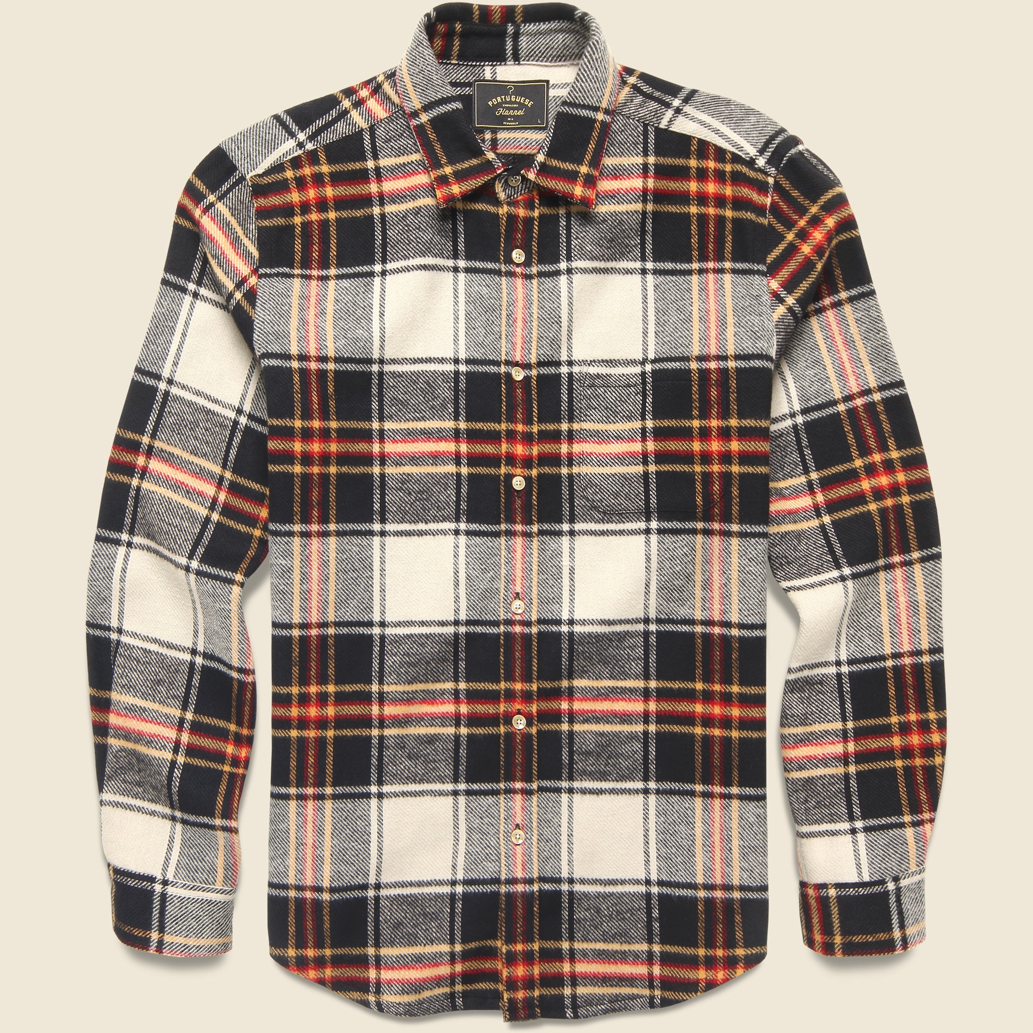 This Arc Shirt from Portuguese Flannel is super soft, warm, and expertly crafted from fine Portuguese cotton and woven with heavy gauge yarns to create a classic ecru, navy, red, and tan plaid pattern. Tailored with a traditional fit through the chest and body, and brushed for an even softer hand, it’s the kind of flannel you’ll never want to take off. Finished with a single chest pocket, urea buttons, and a box pleat at the back yoke for an easygoing, comfortable range of movement.
