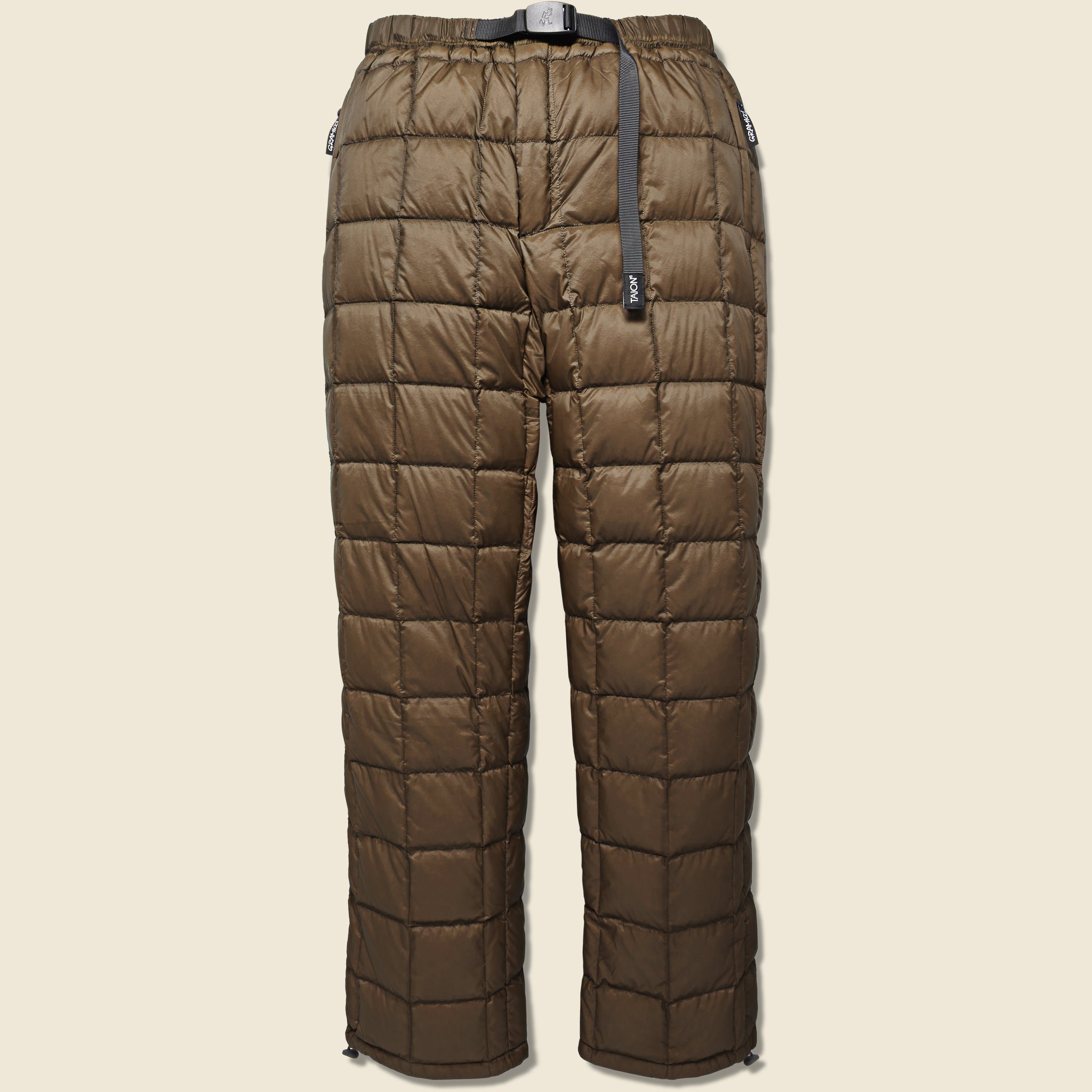 These Down Pants from Gramicci are made in collaboration with Tokyo-based outdoor lifestyle brand Taion, which specializes in making high-performance insulated outerwear using the warmth and breathability of down. Perfect for hitting the slopes or lounging at the lodge, the outer shell is made from soft, wind and weather-resistant nylon that’s quilted and filled with an insulating down-feather blend to provide the ultimate warmth. Finished with three-pocket styling, an adjustable cinch belt, and a bungee-style drawstring at the cuffs to keep the fresh pow out. Pair with the matching Down Pullover Jacket to complete the look.