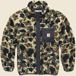 The Prentis Liner from Carhartt WIP is constructed from soft, 10.3oz high-pile poly fleece to keep you nice and warm on chilly days. It’s tailored with a relaxed fit that makes it perfect for tossing over your favorite flannel and detailed with nylon taffeta trim at the placket, cuffs, and hem and finished with a nylon lining through the sleeves to make it easy to take off when you walk in the door.