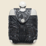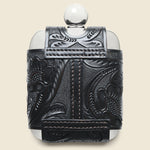 This stainless steel flask from Double RL features a vegetable tanned, full-grain leather case that features a hand tooled, western-inspired design.