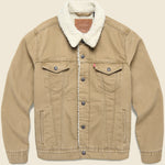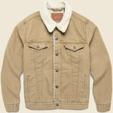 Drawing inspiration from their iconic 1967 Type III trucker jacket, the updated details on this sherpa-lined trucker make it a cozier counterpart to the original. The classic cream sherpa lining and collar, paired with a hardwearing, non-stretch cotton canvas give it a vintage-inspired look that’s winter-ready. Finished with four front pockets, a single interior pocket, and easy snap-front closure to wrap things up.
