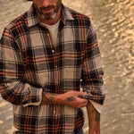 This Arc Shirt from Portuguese Flannel is super soft, warm, and expertly crafted from fine Portuguese cotton and woven with heavy gauge yarns to create a classic ecru, navy, red, and tan plaid pattern. Tailored with a traditional fit through the chest and body, and brushed for an even softer hand, it’s the kind of flannel you’ll never want to take off. Finished with a single chest pocket, urea buttons, and a box pleat at the back yoke for an easygoing, comfortable range of movement.