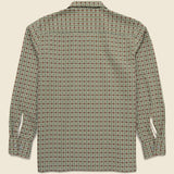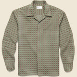 The Oscar Camp Shirt from Universal Works is expertly crafted from lightweight cotton that’s woven with a unique geo-tile pattern to add a touch of dimension to your look this season. It’s tailored with a perfectly relaxed, boxy fit that runs true to size and comes with a single chest pocket, a side split hem, and a convertible camp collar to top it off.