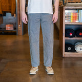 - Yarn-dyed rail-stripe pattern