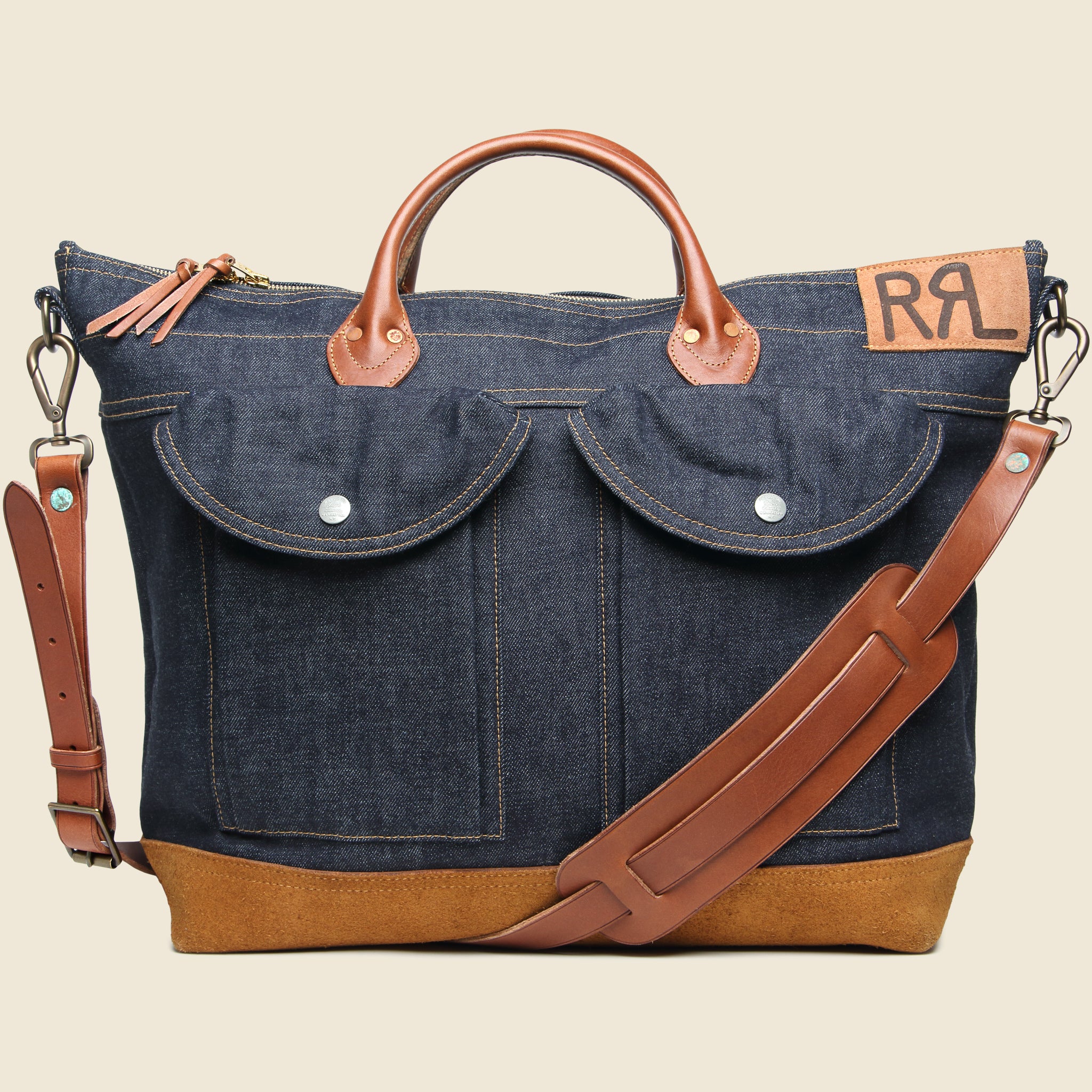 The Dayton Bag from Double RL is made with rigid, 100% cotton denim that’s dyed with true indigo and detailed with oiled, full-grain leather and suede accents that will break in beautifully over time. Featuring two exterior pockets for smaller accessories, it comes with an interior slip pocket with an additional zip pocket, a concealed back zip pocket, and enough internal space for a weekend getaway or serve as your daily driver.