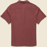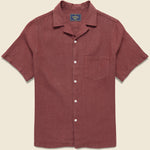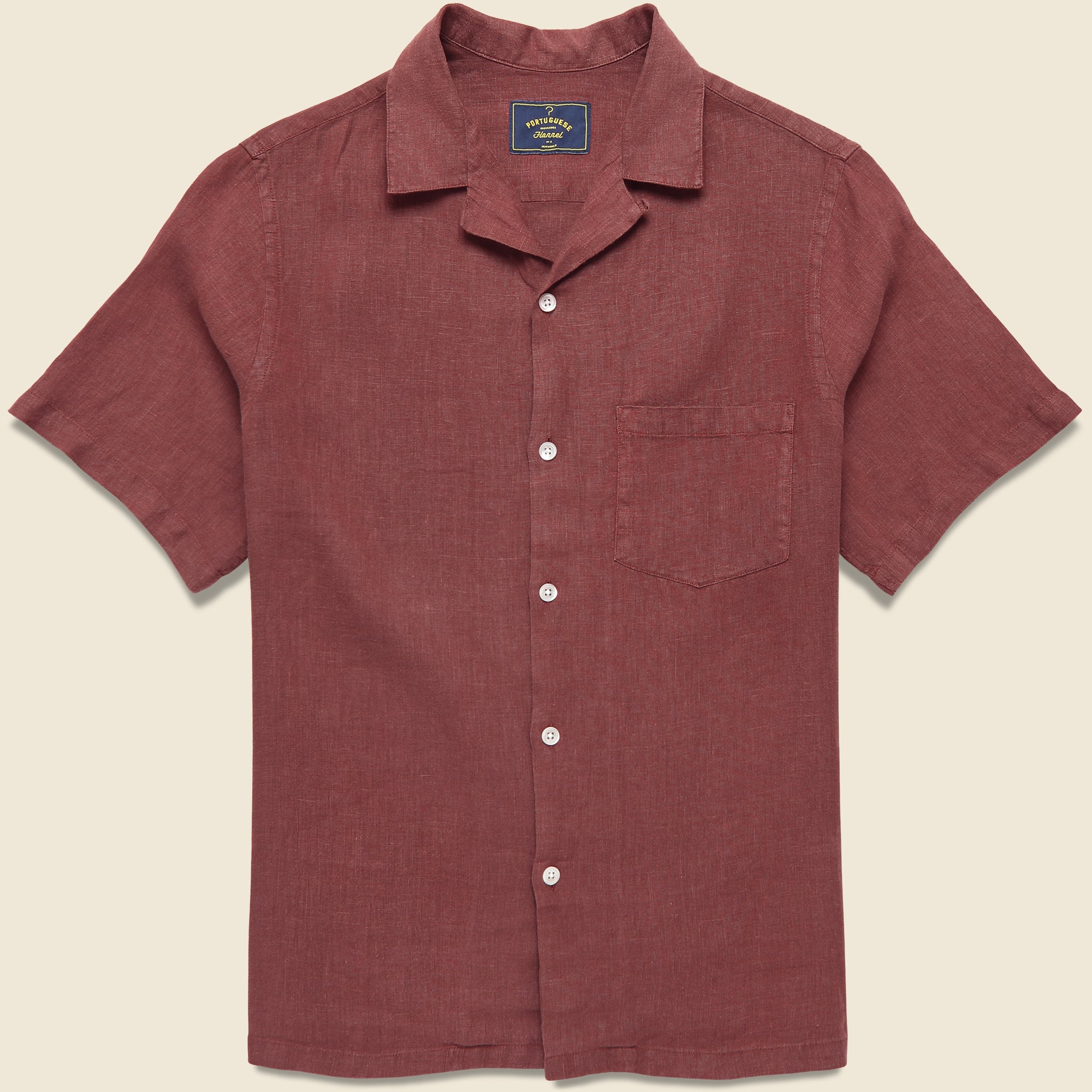 The Linen Camp Shirt from Portuguese Flannel is cut from lightweight, breezy linen to keep you nice and cool on warm, sunny summer days. It’s tailored with a perfectly relaxed fit that runs true to size and comes with a single chest pocket, squared hem, and a classic camp collar for a laid-back ‘50s look and feel.