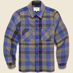 This Whiting Overshirt from Wax London is designed with versatility in mind and cut from a super soft, cotton-poly blend that’s woven with a textured check pattern. It has a traditional fit that runs true to size and comes with two front patch pockets, contrast trim at the cuffs and neckline for added durability, and corozo nut buttons for a classic finish.