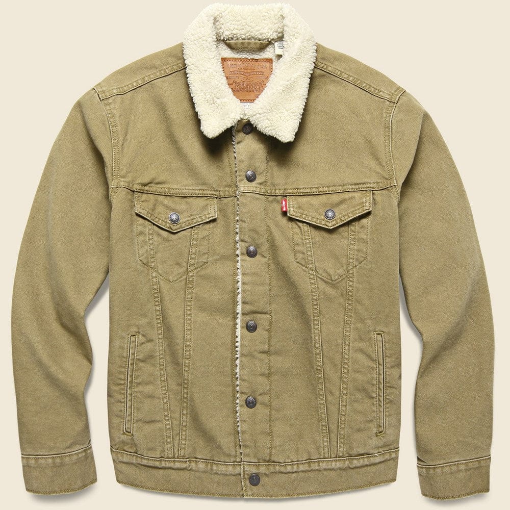 Drawing inspiration from their iconic 1967 Type III trucker jacket, the updated details on this sherpa-lined trucker make it a cozier counterpart to the original. The classic cream sherpa lining and collar, paired with a hardwearing, non-stretch cotton canvas give it a vintage-inspired look that’s winter-ready. Finished with four front pockets, a single interior pocket, and easy snap-front closure to wrap things up.