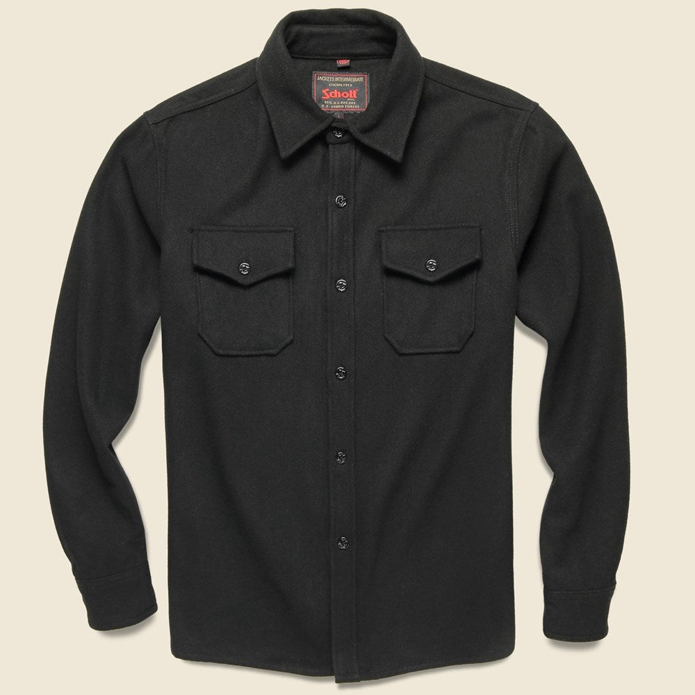 This Wool Blend CPO Shirt from Schott NYC is inspired by vintage US Naval jackets - traditionally found in the Chief Petty Officer's seabag. Made out of a durable, heavyweight 20oz wool blend that's warm without the extra bulk and detailed with two flap front chest pockets, a button placket, and cut with a relaxed fit that’s made for layering.