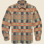 The Jacquard Farrell Workshirt from Double RL is made with soft, heavyweight cotton that’s jacquard-woven with a geometric design inspired by vintage blankets. It’s tailored with a relaxed fit that runs true to size and comes detailed with a pair of chest pockets, a buttoned placket, and authentic runoff chainstitch construction at the side seams, which is based on workshirts from the 1920s and ‘30s.
