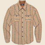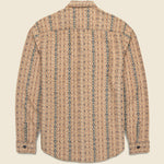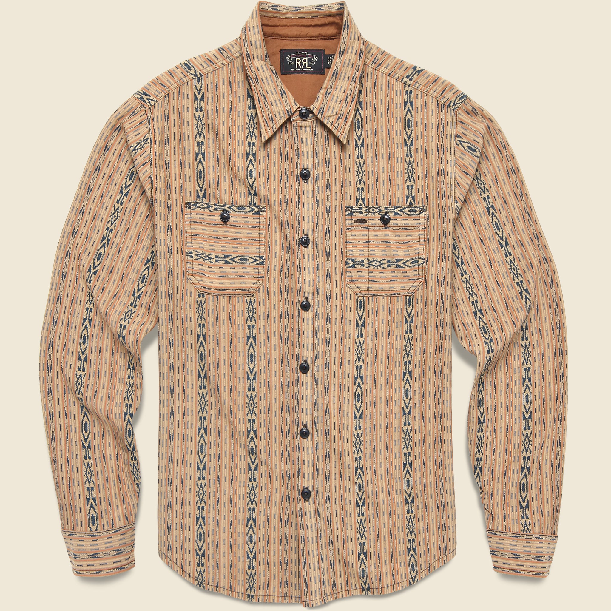 The Peter Workshirt from Double RL is made with midweight cotton jacquard that’s woven with a pattern inspired by a vintage fabric swatch. It’s cut with a traditional fit for a more tailored look and comes detailed with a pair of buttoned chest pockets, a slightly curved hem, and a straight collar to top it off.
