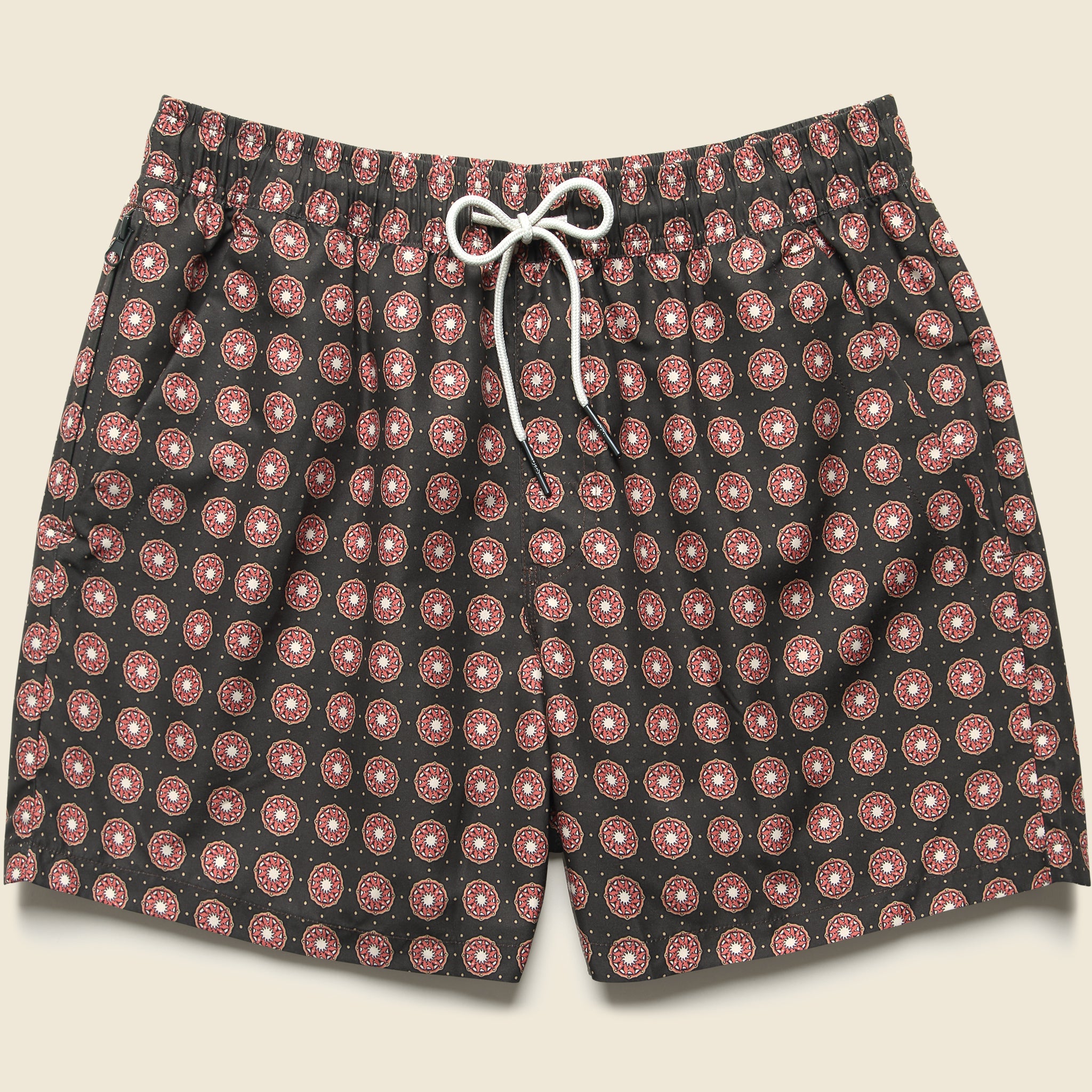 These Swim Trunks from OAS are made from a quick-drying, lightweight polyester to give you resort-level comfort whether you’re hanging ten or taking a dip to beat the heat. They’ve got two front pockets, a back pocket, and a hidden zipper pocket for a hotel room key or your bank card on the beach. Finished with a fit that’s not too tight and not too baggy, a comfortable mesh lining, and printed with a retro-inspired geometric pattern, these trunks are an easy go-to for a fun summer.