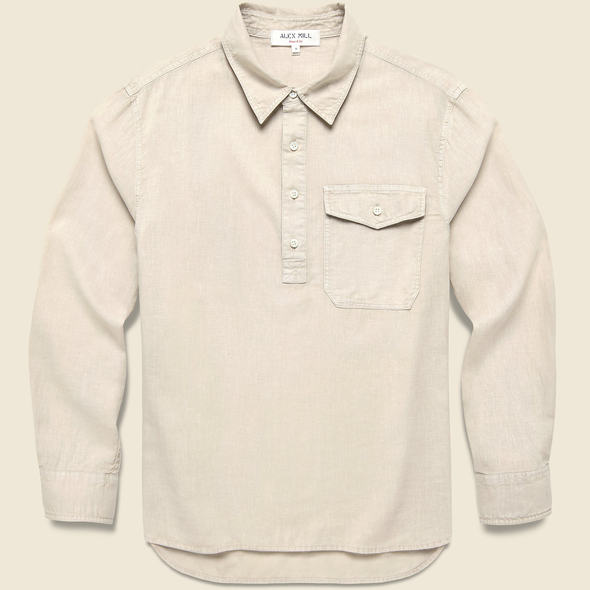 The Carter Popover from Alex Mill is made with a lightweight and breezy cotton-linen blend and tailored with a classic popover silhouette for a vintage workwear-inspired look. It has a relaxed fit that runs true to size and is finished with a single chest pocket, real shell buttons, and a slightly curved hem to round things out.