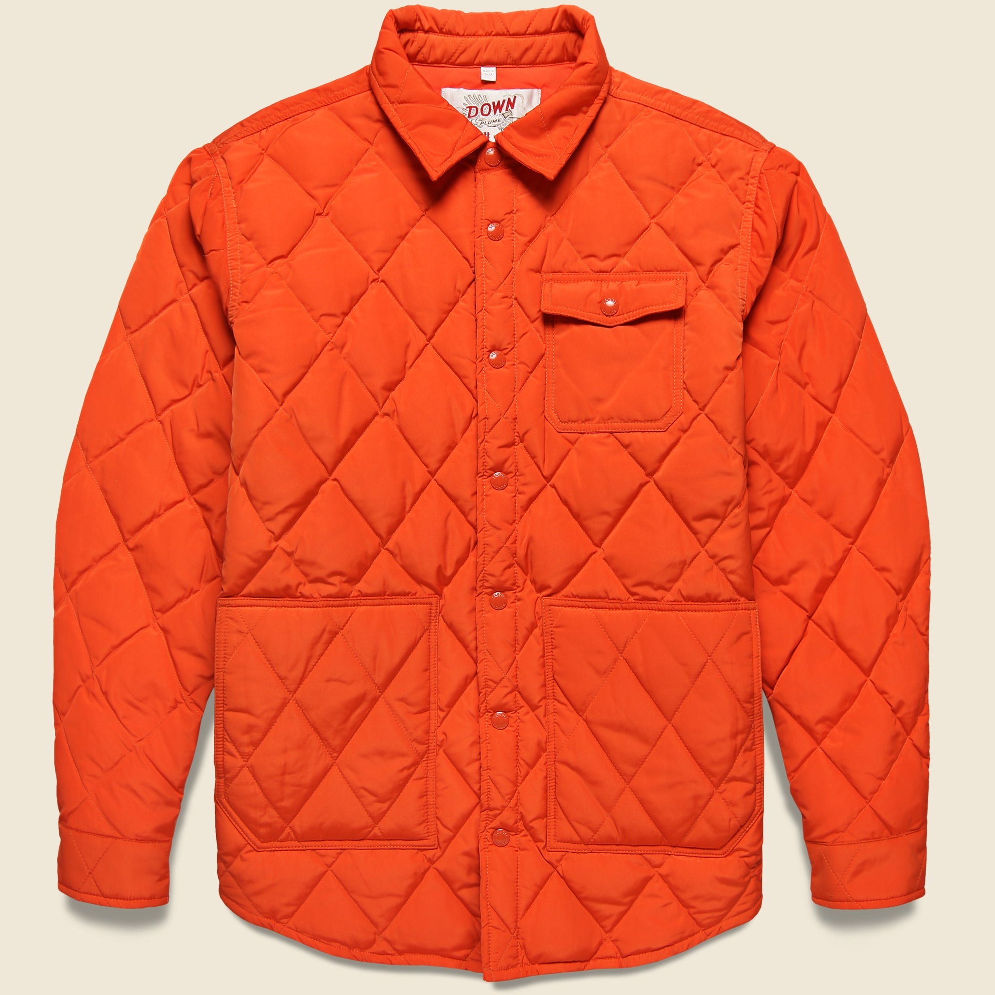 Down-Filled Quilted Shirt Jacket - Orange