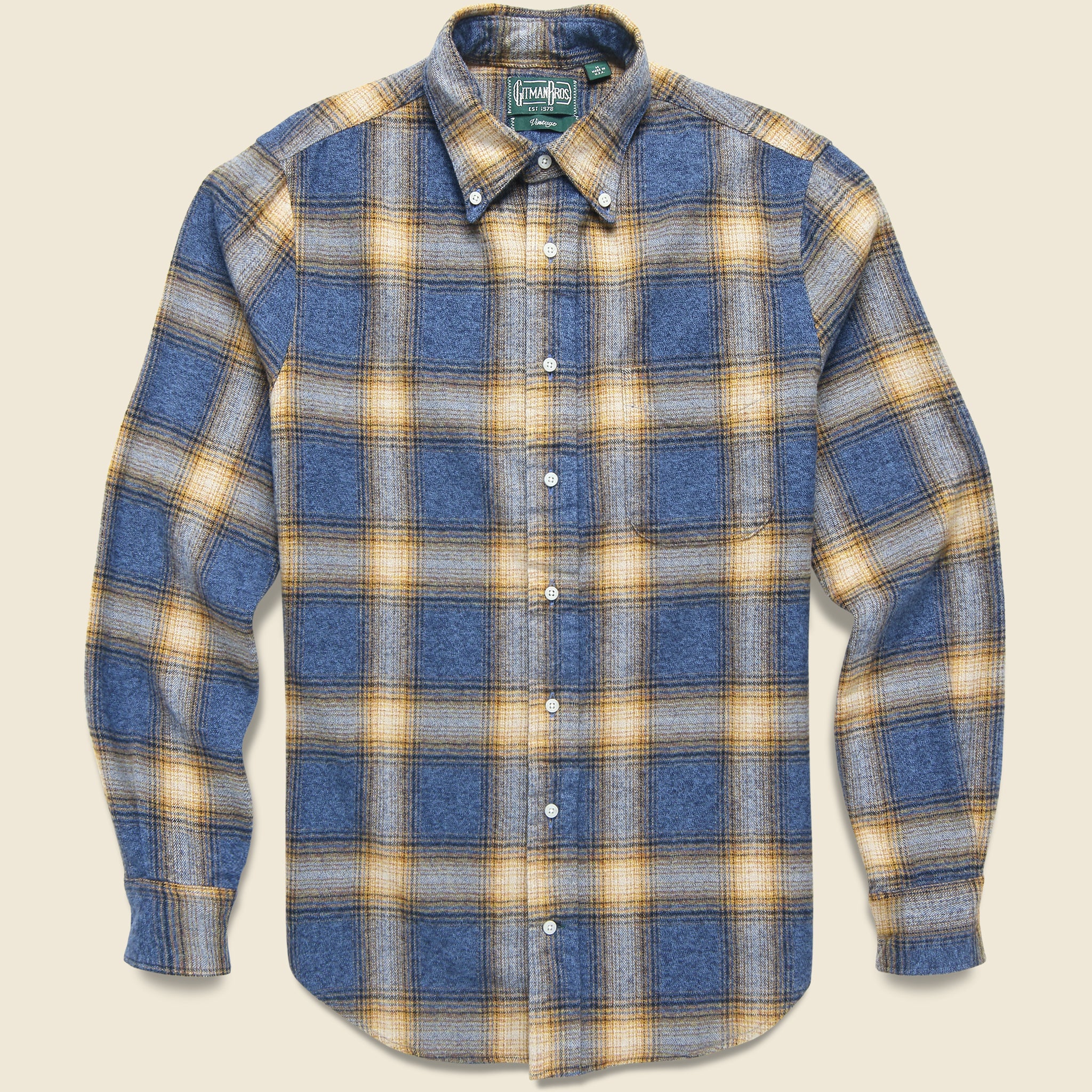 The Double Sided Brushed Shirt from Gitman Vintage is cut from soft, yarn-dyed cotton flannel that was woven in Japan and has been brushed on both sides for an extra soft hand. It has a tailored fit through the body and shoulders and comes with a single chest pocket, a button-down collar, and a slightly curved hem to round it out.