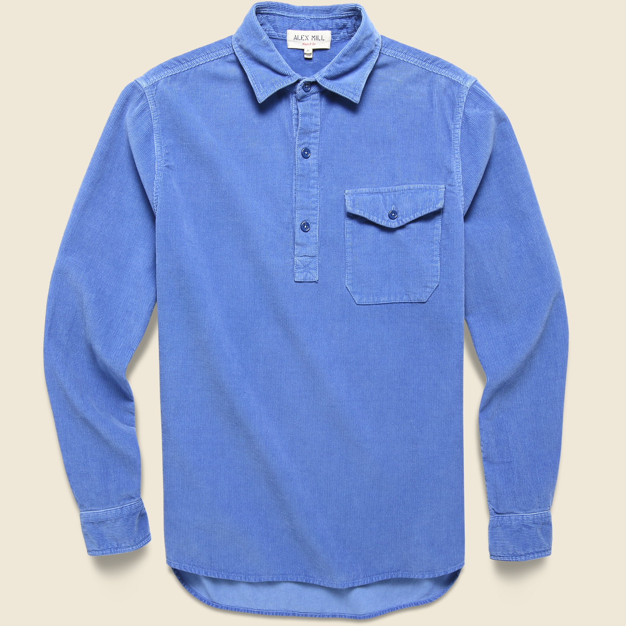 This Popover Cord Shirt from Alex Mill is made from lightweight, fine wale cotton corduroy that’s been garment dyed and washed for year-round comfort. The cool aegean blue will pair well with any pair of jeans or chinos in your closet and the comfortable fit feels great on its own or layered over your favorite shirt. It’s finished with a single chest pocket, classic popover placket, and a spread collar to top it off.