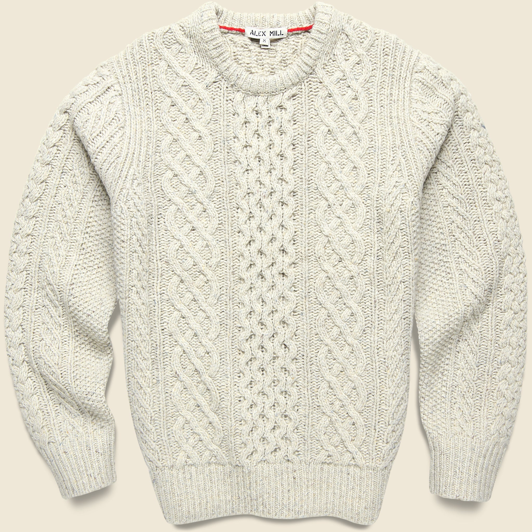 This classic crew sweater is made out of a unique mohair, wool & recycled nylon blend that’s warm, super soft, and knit with a traditional cable pattern for a timeless look. It has a slightly relaxed fit through the chest and shoulders and is knit with comfortable ribbing and the hem and cuffs, and a crewneck to top it off.