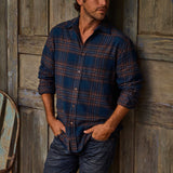 The Bossa Shirt from Portuguese Flannel is made with soft, midweight cotton flannel that’s woven with a classic navy and brown plaid pattern perfect for chilly weather. It’s tailored with a traditional fit that runs true to size and comes detailed with a single chest pocket, a simple spread collar, and a corozo button button placket to wrap things up.