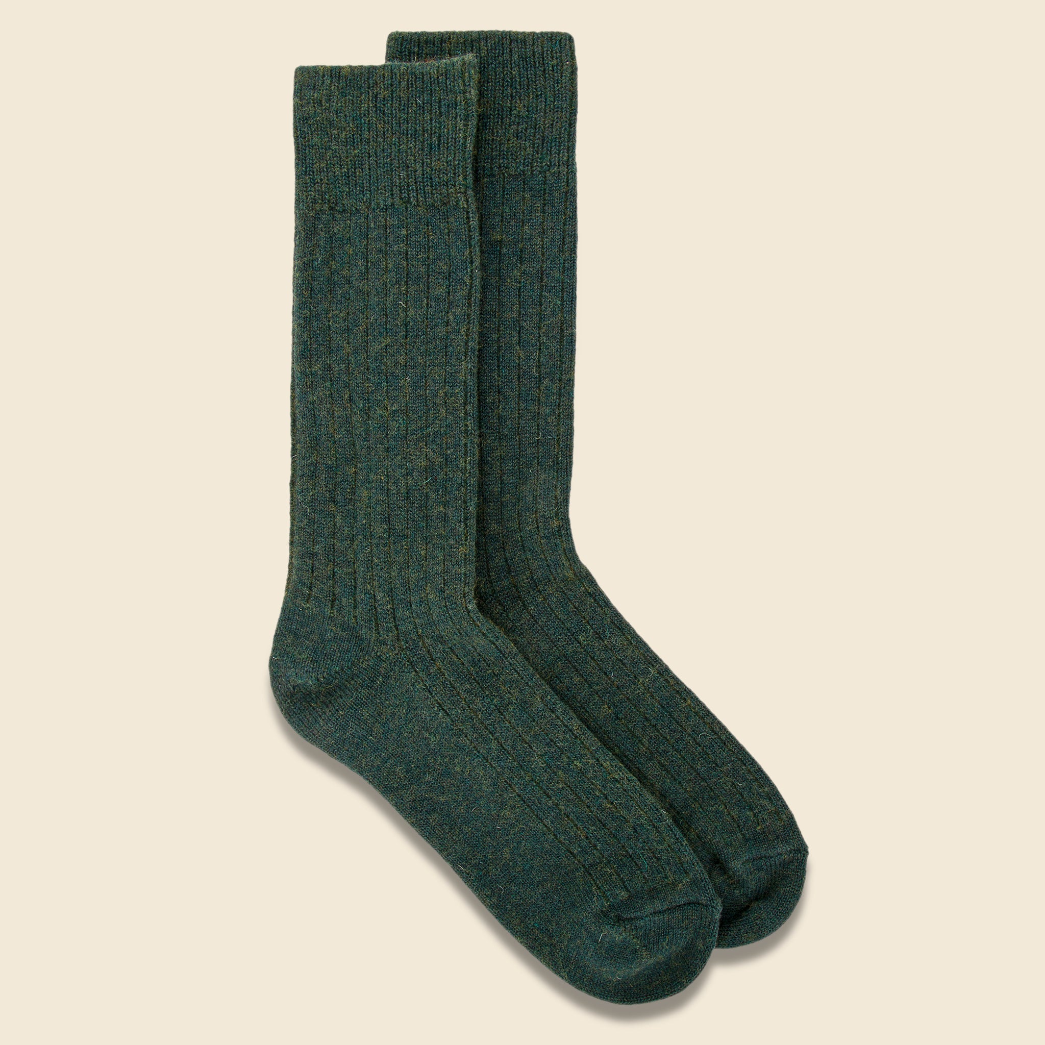 A perfect blend of cotton and wool, these Rib Socks from RoToTo are made using small-batch knitting machines and traditional techniques to create a simple, comfortable sock that lasts. This dark green pair is finished with a comfy, wide-ribbed ankle and hand-linked toe seams you’ll never know are there.