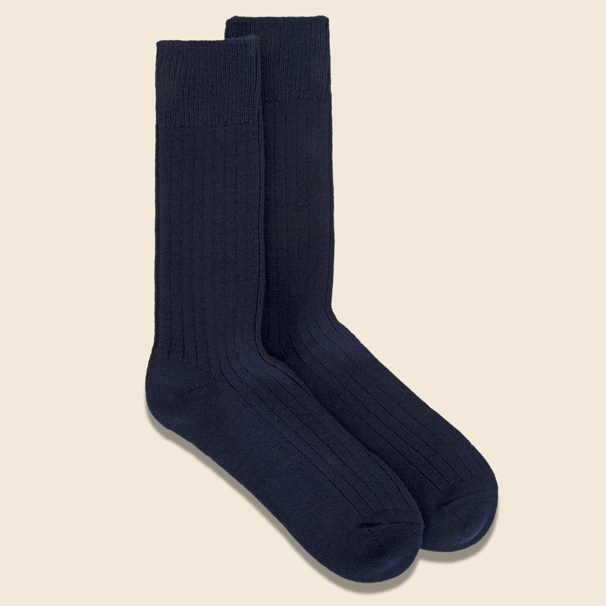 A perfect blend of cotton and wool, these Rib Socks from RoToTo are made using small-batch knitting machines and traditional techniques to create a simple, comfortable sock that lasts. This navy pair is finished with a comfy, wide-ribbed ankle and hand-linked toe seams you’ll never know are there.