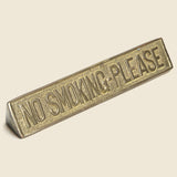 This solid brass desk plaque politely reminds others to not light up around you. Perfect for you desk, it harkens back to the days when smoking inside was the norm.