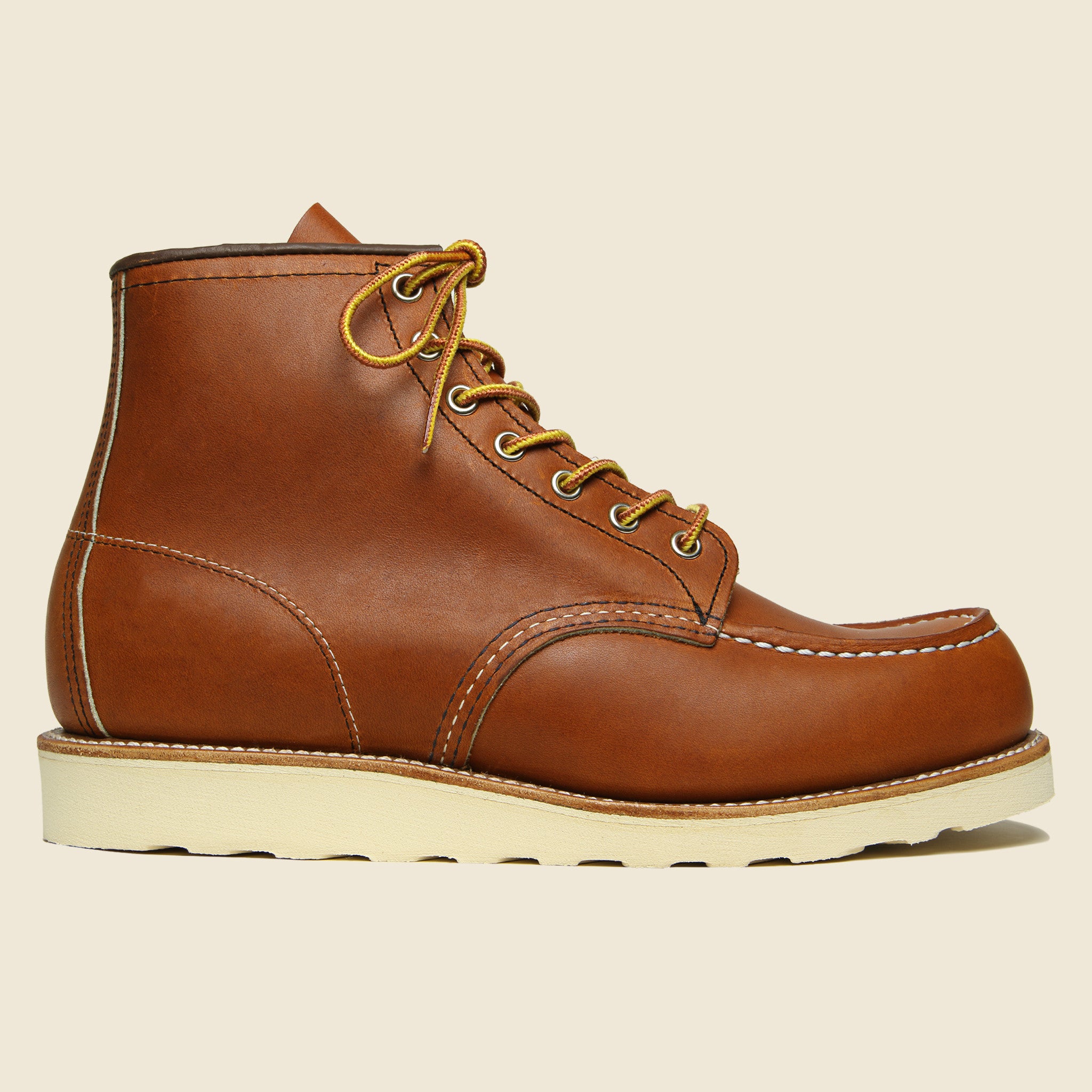 The 875 Classic Moc in Oro Legacy leather features the iconic Red Wing Traction Tred outsole, all-around Goodyear welt, and Puritan triple stitch with distinctive gold & tan Taslan laces. Originally designed in the 1950s, this classic design is inspired by the construction of moccasins originally worn by the North American Algonquin Indians.