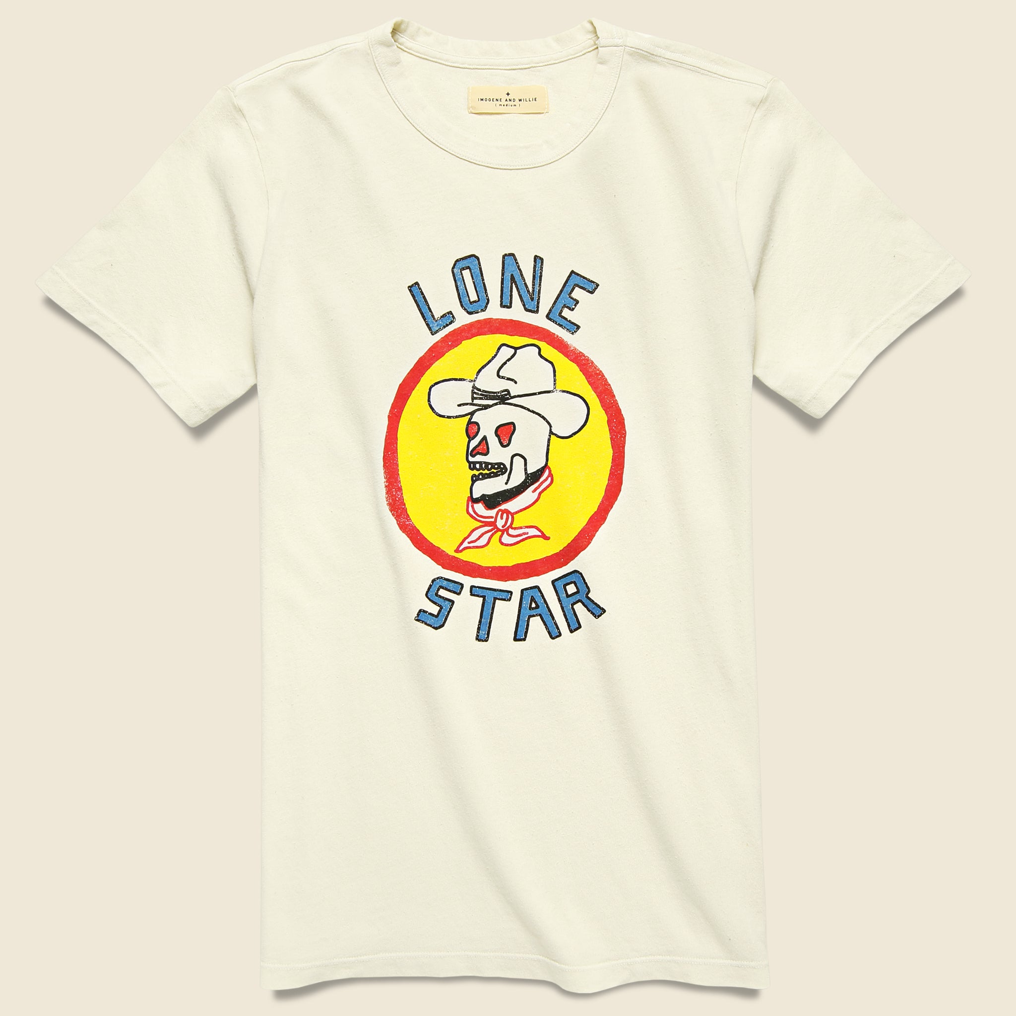 Imogene & Willie has always been attracted to the graphic tees of the '50s & '60s: the simple fonts, the imperfect placements of the graphics, the super-soft, broken-in feel. The exclusive Lone Star Tee for STAG takes all of those elements & rolls them into one to create a modern graphic tee with all the look & feel of a perfect vintage one. Patterned, cut, and sewn by a small team in Los Angeles & then screen-printed in Nashville, the Lone Star Tee is available only at STAG.