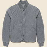 The Quilted Bomber Jacket from Save Khaki United is cut from soft cotton that features a classic onion-quilted construction with a 100% polypill for breathable warmth. It has a traditional-slim fit through the chest and shoulder and comes detailed with a pair of handwarmer pockets, a snap-front placket for ease and versatility, and is finished with a ribbed baseball collar for a vintage-inspired look.