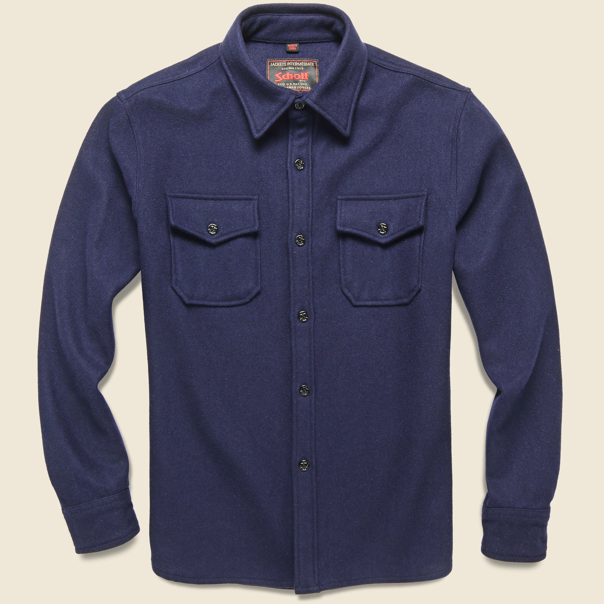 This Wool Blend CPO Shirt from Schott NYC is inspired by vintage US Naval jackets - traditionally found in the Chief Petty Officer's seabag. Made out of a durable, heavyweight 20oz wool blend that's warm without the extra bulk and detailed with two flap front chest pockets, a button placket, and cut with a relaxed fit that’s made for layering.