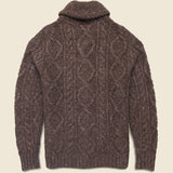 This Shawl Cardigan from Double RL is made with a warm blend of wool, cotton, and linen that’s knit with a geometric Aran-knit design for a timeless look. It’s tailored with a traditional fit that runs true to size and comes detailed with a pair of front waist patch pockets, genuine horn buttons, a rib-knit hem and cuffs, and a cozy shawl collar to top it off.