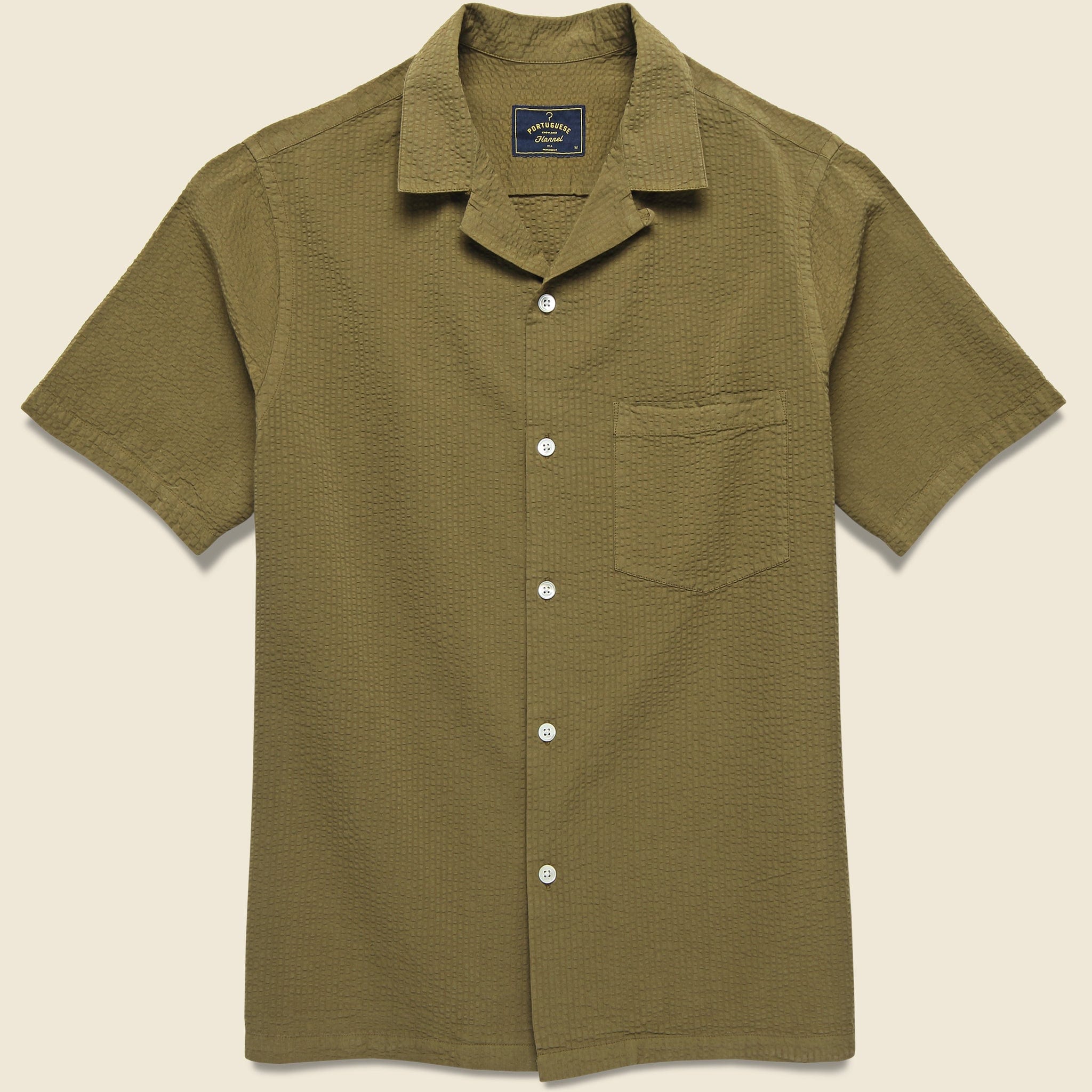 The Atlantico Camp Shirt from Portuguese Flannel is made from lightweight and breathable cotton seersucker that’s naturally moisture-wicking and perfect for warm, sunny days. It’s tailored with a perfectly relaxed fit and detailed with a single chest pocket, a squared hem, and topped with a classic camp collar for an easygoing finish.