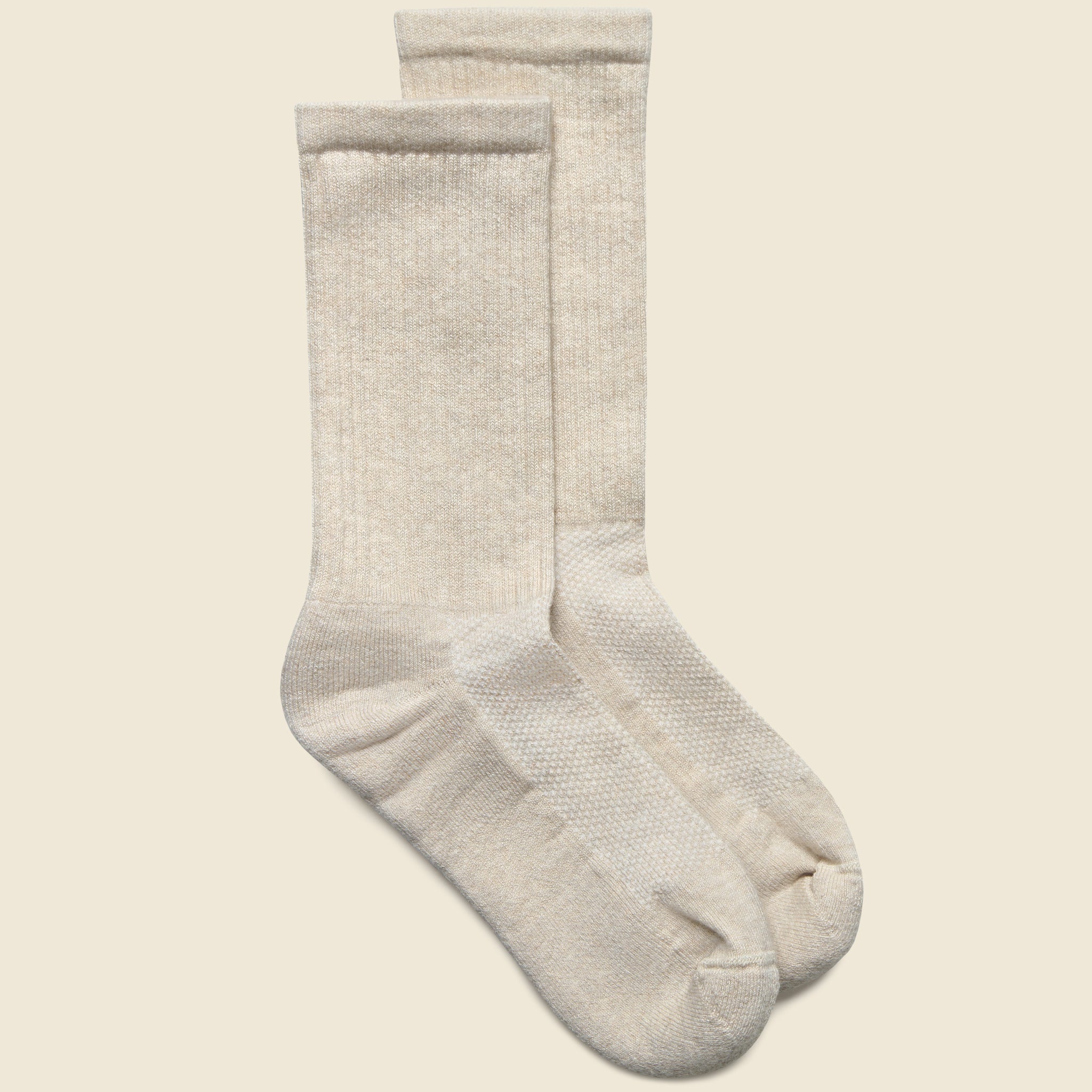The Statement Crew Socks from American Trench are made in the Hickory Region of North Carolina from an incredible soft yet durable Egyptian Mako Cotton blend that features a premium mesh knit pattern at the top of the foot for ultimate comfort and breathability. Finished with a traditional 3x1 rib knit mid-calf height to make them stand out in both sneakers and loafers without appearing out of place.