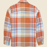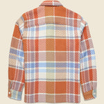 This Whiting Overshirt from Wax London is designed with a complex, unique basket weave fabric that was sustainably made by a family-run French mill using recycled cotton to make it a sustainable, reliable layer in your year-round rotation. It has a relaxed fit that runs true to size and comes with two front patch pockets, contrast trim at the cuffs and neckline for added durability, and corozo nut buttons for a classic finish.