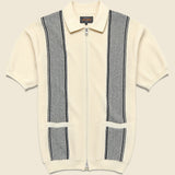 The Zip Knit Polo from Beams+ is made from a soft poly-flax blend and is jacquard-knit with a classic vertical stripe pattern for a midcentury-inspired style. It’s cut with a retro, slim fit for a more tailored look and detailed with a rib-knit hem and sleeves, a spread collar, and a two-way zip front closure for a modern finish.