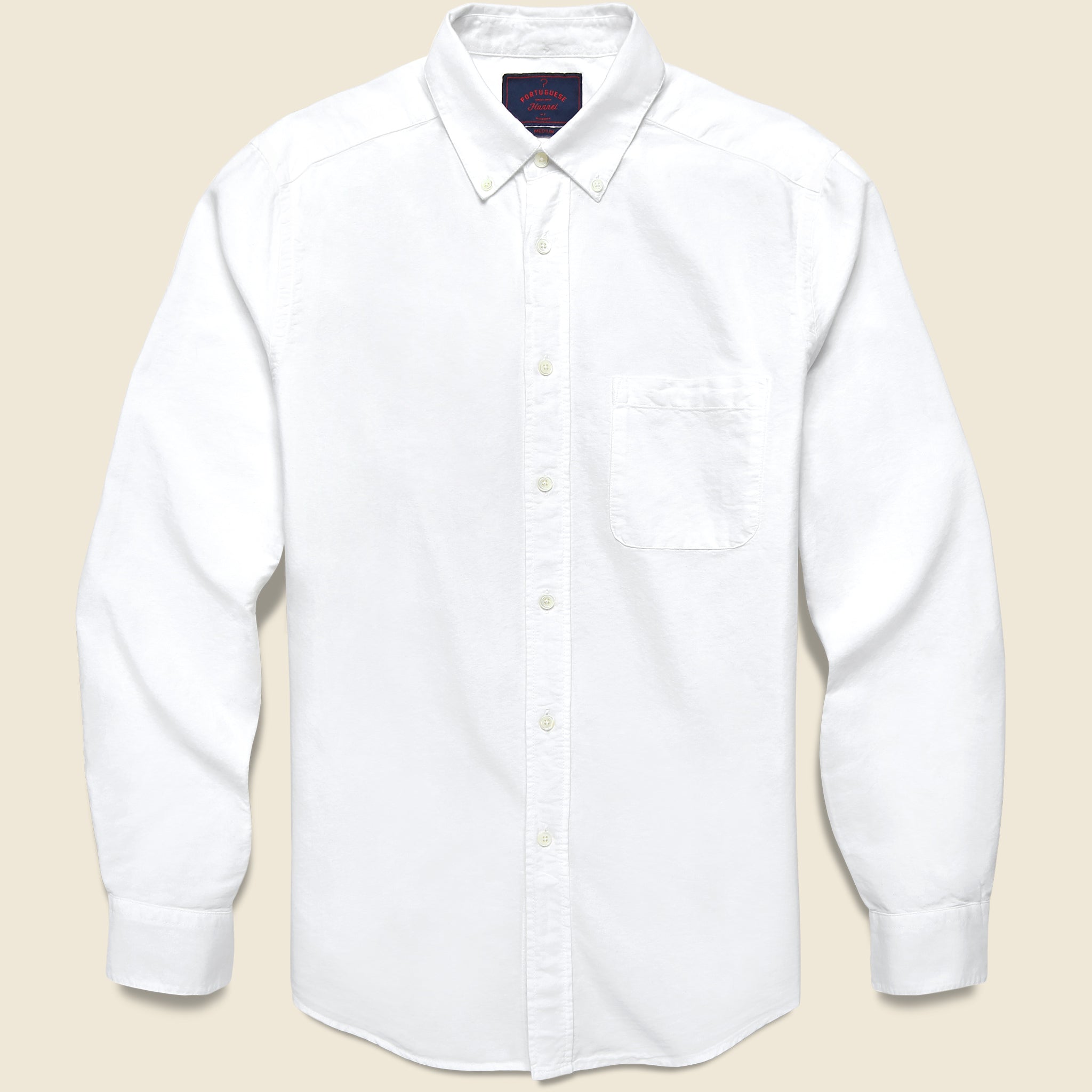 The Belavista Oxford Shirt from Portuguese Flannel is made from soft and sturdy cotton Oxford cloth and tailored with a traditional fit to make it an easy go-to for everyday wear. It’s topped with a button-down collar, a single chest pocket, and genuine mother-of-pearl buttons for a classic finish.