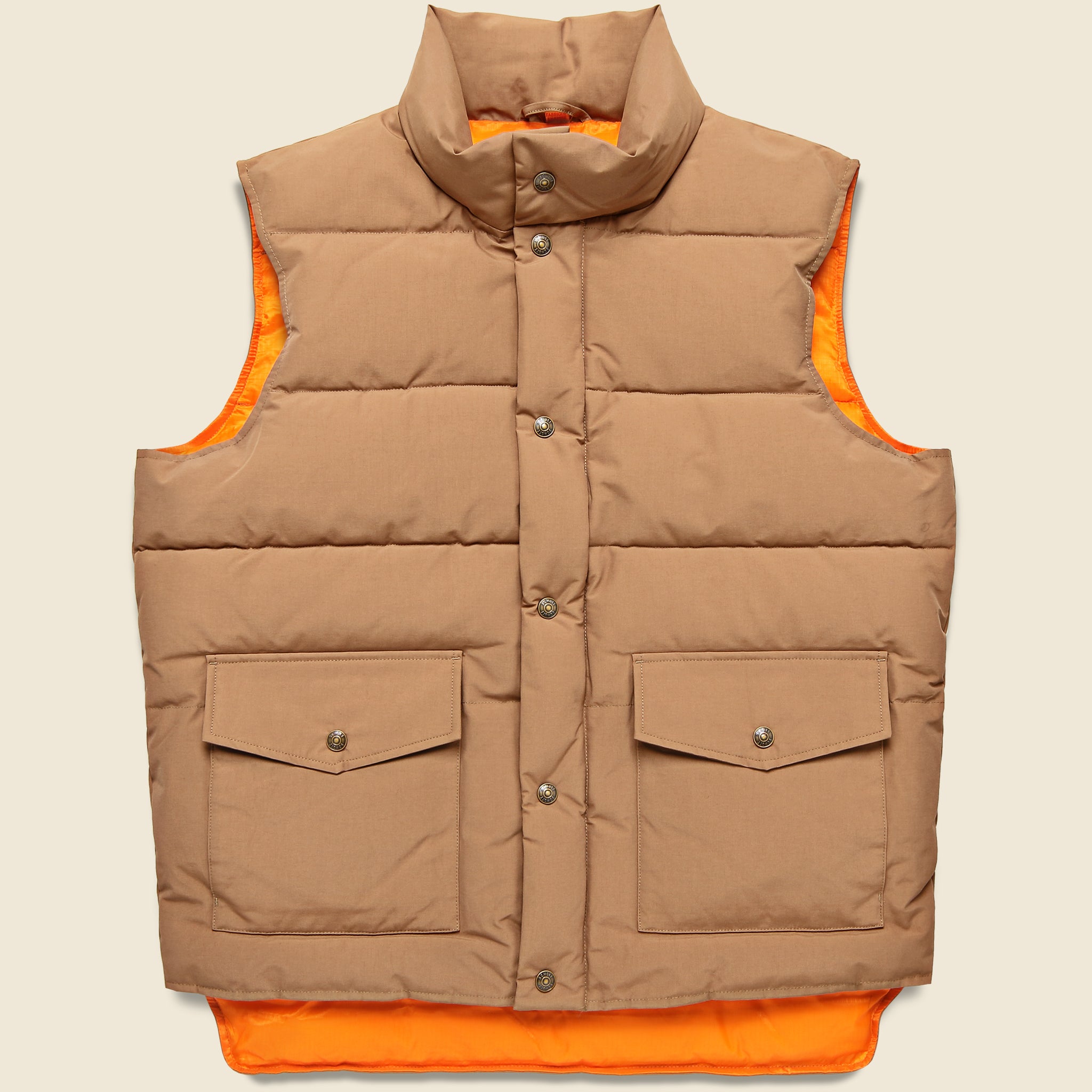 This puffer vest from Schott NYC is made with a soft, water-resistant cotton-nylon blend that’s perfect for wet, winter days and has a classic channel-quilted construction that’s filled with cozy duck down to provide ultimate insulation and warmth. It has a relaxed fit that runs true to size and comes with a pair of two-way waist patch pockets, a snapped front closure, and a contrast lining for a vintage-inspired finish.