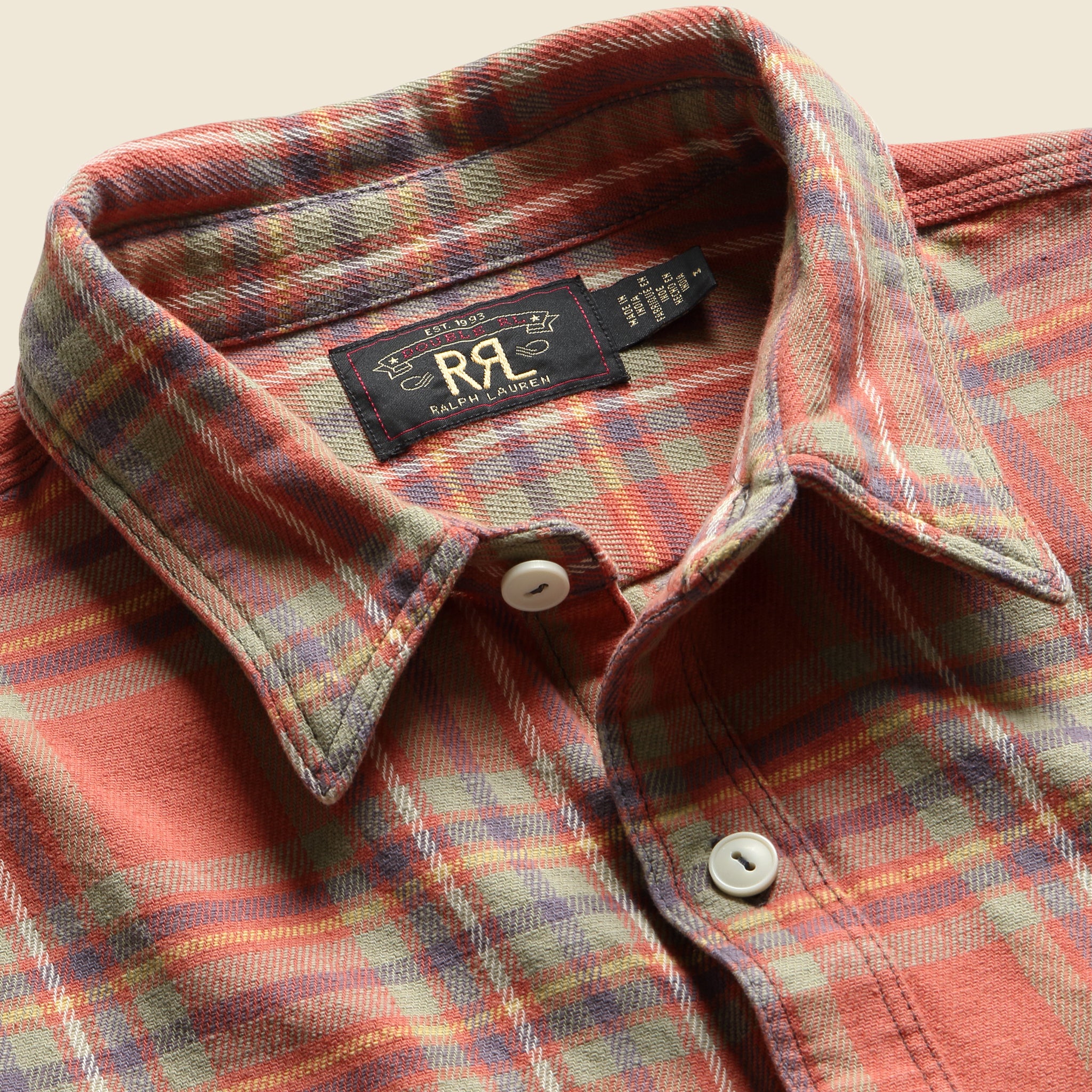 This Farrell Workshirt from Double RL is crafted from midweight cotton twill cloth that features a classic yarn-dyed plaid pattern and has been brushed at the underside of the fabric for extra softness. It’s tailored with a traditional fit that runs true to size and comes detailed with a pair of buttoned chest pockets, a straight collar, and authentic runoff chain-stitched construction at the size seams, which is based on workshirts from the 1920s and 30s.
