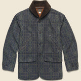 The Galway Coat from Double RL is made with a hearty cotton oilcloth that’s printed with a subtle, vintage-inspired plaid pattern. It comes fully lined with soft cotton and is tailored with a vintage sporting-inspired silhouette that runs true to size. Detailed with a pair of large front waist patch pockets with flap closures, a pair of handwarmer pockets, two interior pockets, adjustable buttoned tabs at the cuffs, and a wide wale corduroy shawl collar for an authentic, vintage finish.