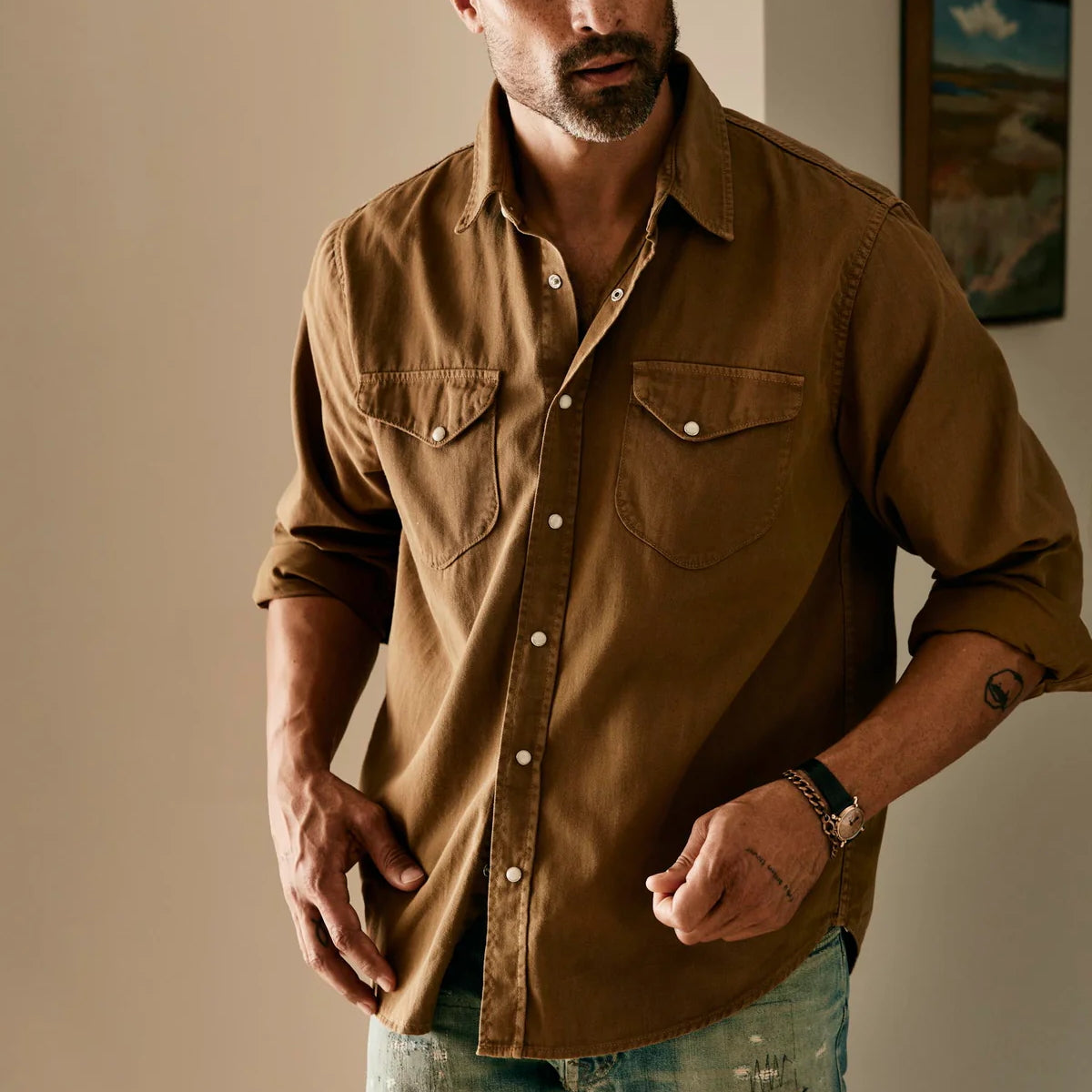The Hayes Pearl Snap Shirt from Imogene + Willie is patterned, cut, and sewn right here in the U.S.A. from lightweight, 6oz cotton twill that’ll just get softer with every wash and wear. It’s tailored with a more traditional than slim fit for extra comfort and comes detailed with a pair of chest pockets with angled flaps, a slightly curved hem, and a classic pearl snap placket to finish things off.