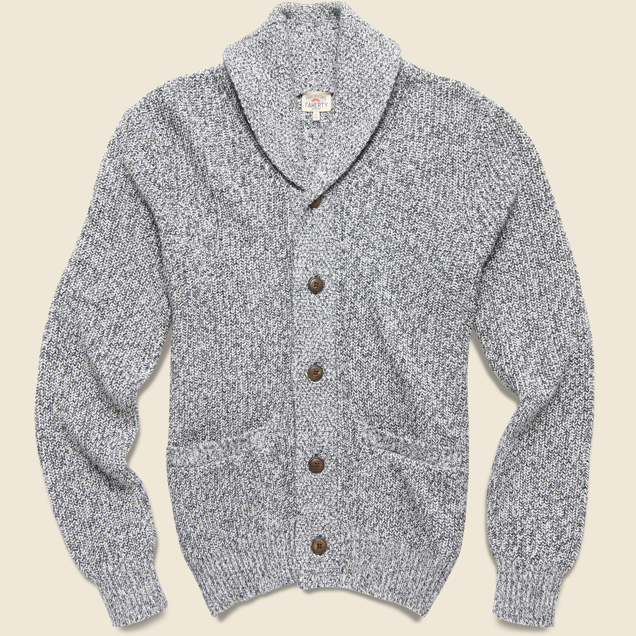 Knit from four different colors of yarn for contrast and depth, the Marled Cotton Cardigan from Faherty is a polished, vintage-inspired sweater for chilly days. The heathered yarn is made from a cotton-cashmere blend, in a soft and weighty knit for year-round comfort and softness. Crafted in classic shawl cardigan style for easy layering and detailed with wooden buttons, two pockets at the waist, and a ribbed hem and cuffs.