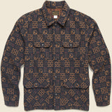 The Ruddick Cruiser Jacket from Double RL is made with midweight Italian cotton jacquard that’s woven with a vintage-inspired pattern and cut with a silhouette inspired by woolen overshirts from the 1930s and ‘40s. It’s tailored with a relaxed fit that runs true to size and comes partially lined with cotton chamois, two snapped chest pockets, two sets of handwarmer pockets, and a corozo button placket to help trap in warmth.