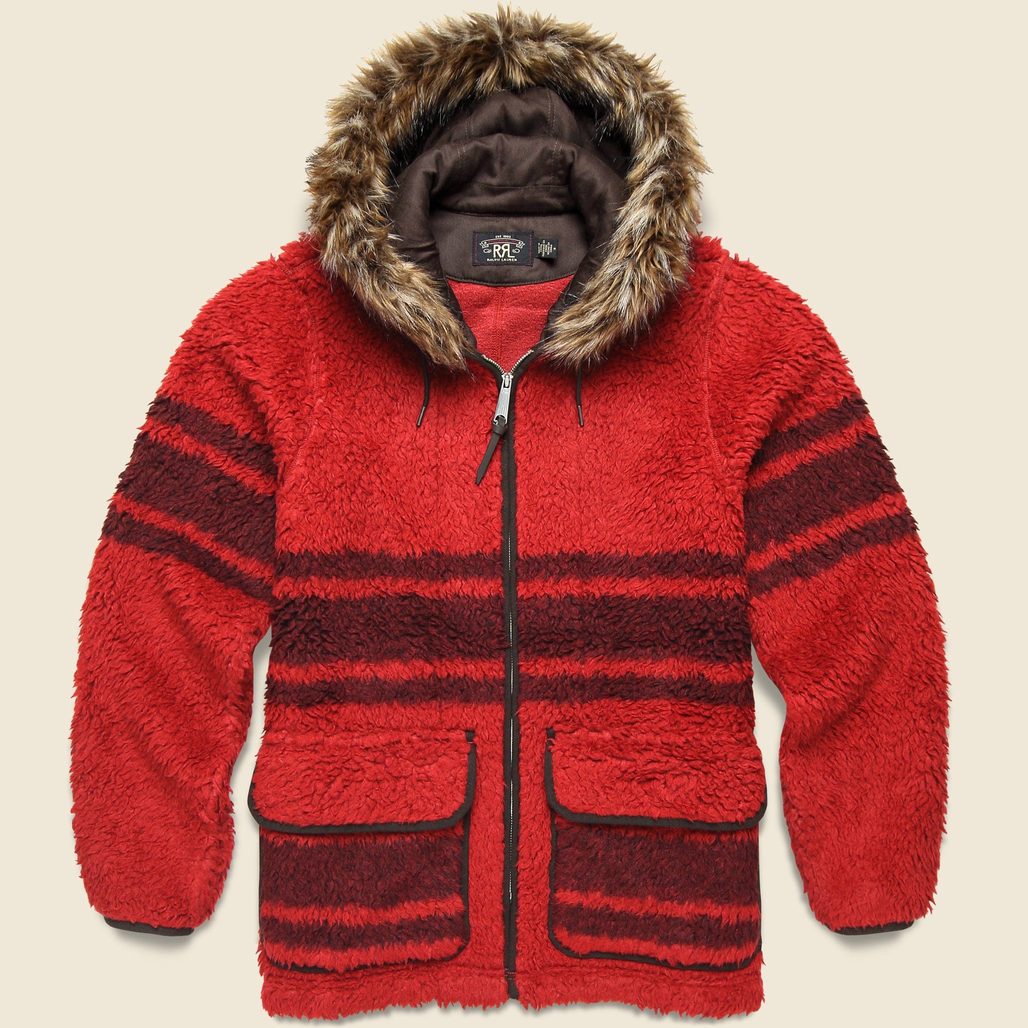 The Bay Full Length Coat from Double RL is made from chunky and soft high-pile fleece to keep you cozy and warm on cool, breezy days. It’s jacquard woven with a block stripe pattern and cut with a perfectly relaxed fit for easy layering. Detailed with a drawstring hood with faux-fur trim, elasticized cuffs, and a full-zip front to help trap in warmth.
